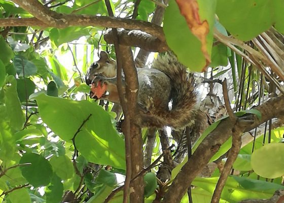 Allongée sur la plage de Carrizalillo, je vois un couple de personnes agées tête levée prenant des photos. Hum ! Que se passe t-il ? A ma question, ils me montrent notre ami. En fait, ce charmant couple se prélassait tranquillement sur leur serviette quand soudain, des morceaux d’écorce ont commencé à tomber sur eux de manière régulière. Intrigués, ils ont cherché qui pouvait déranger leur quiétude. Et bien ce n’était rien d’autre que notre cher ami Scratt mangeant son fruit. On est d’accord qu’il ressemble à Scratt (l’Age de glace) ?